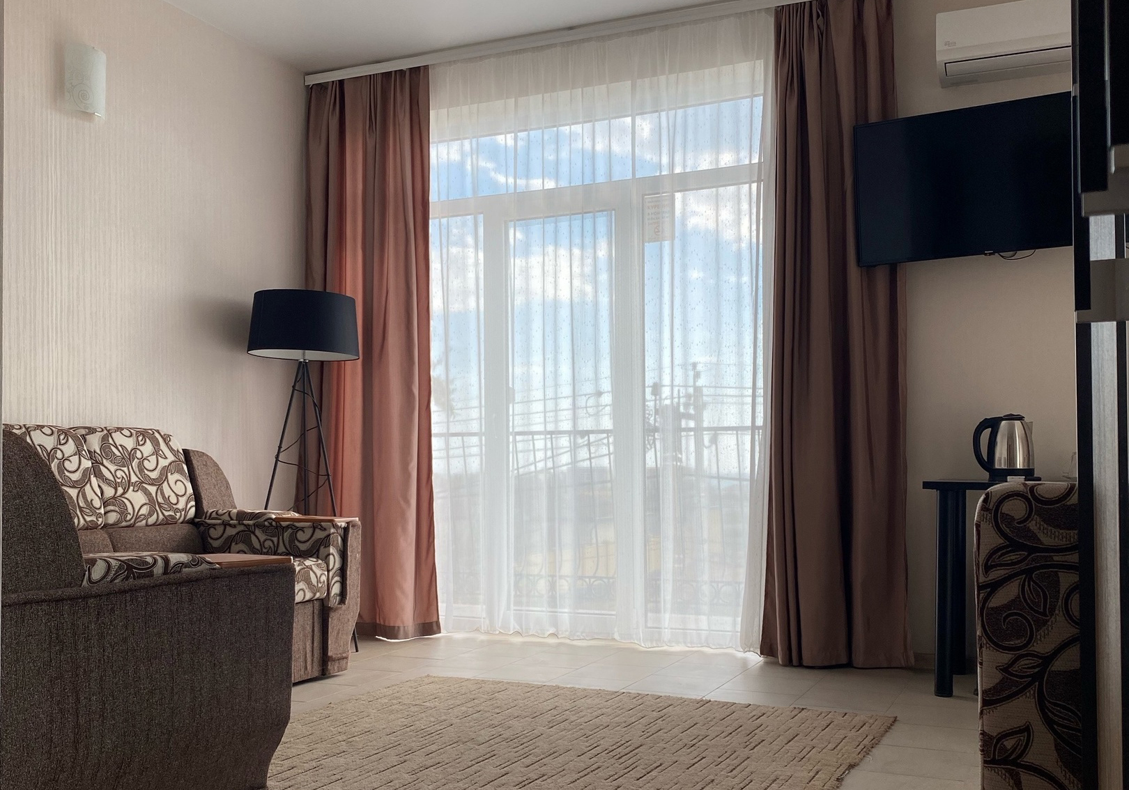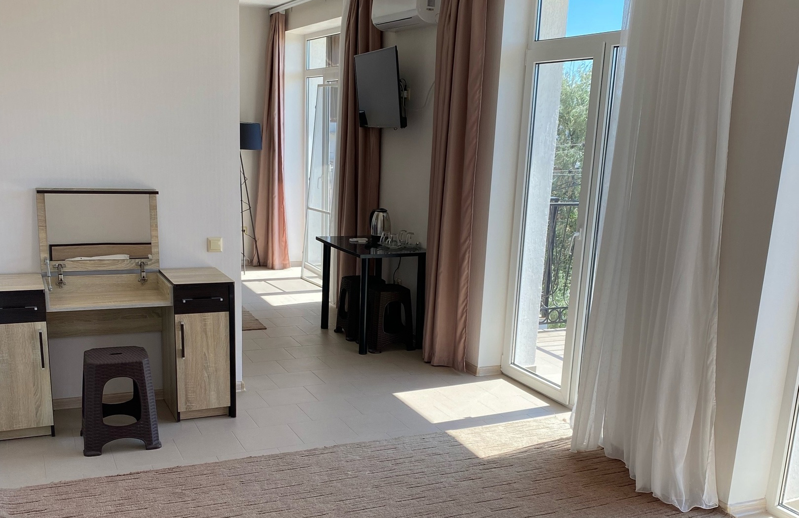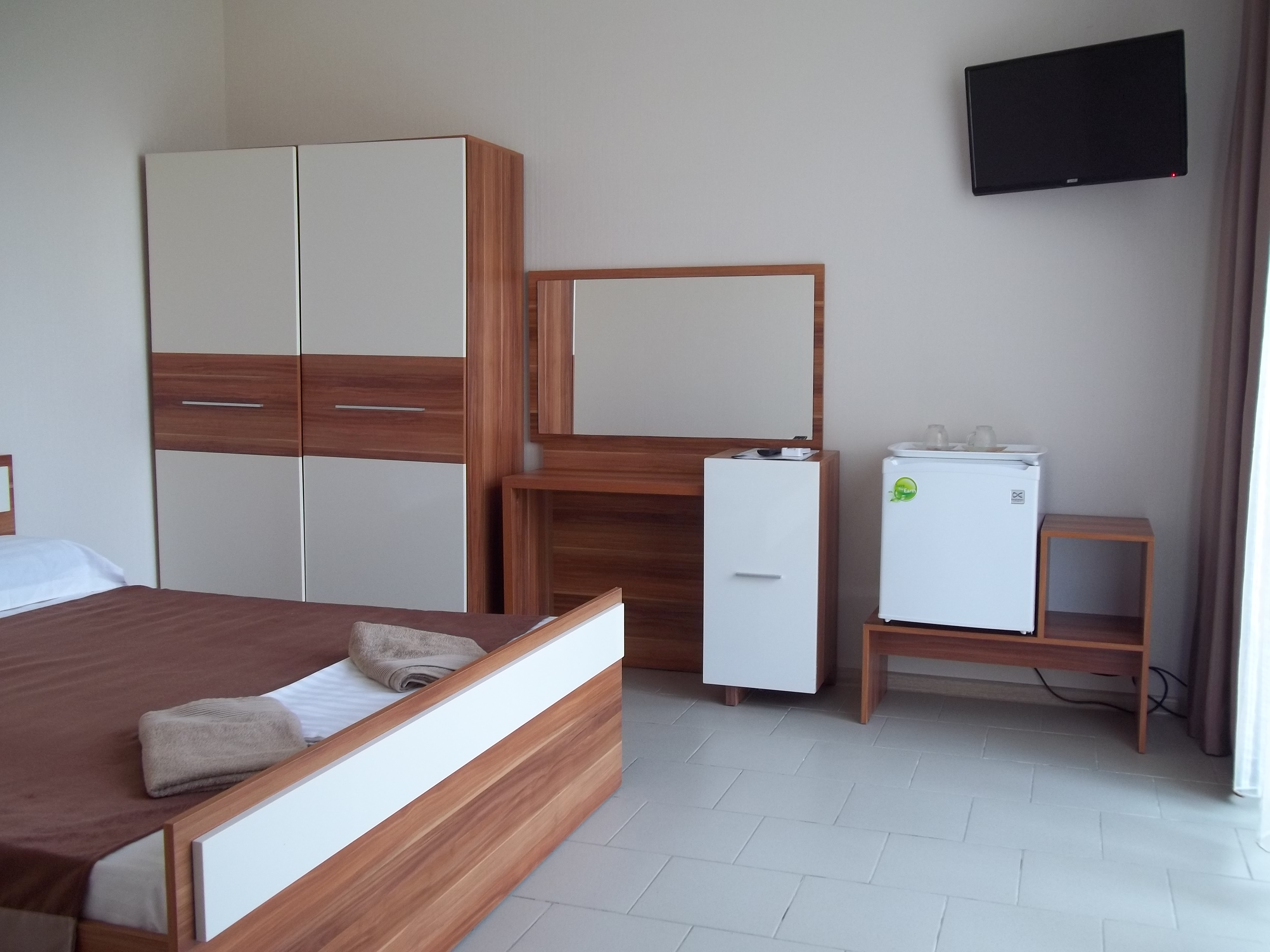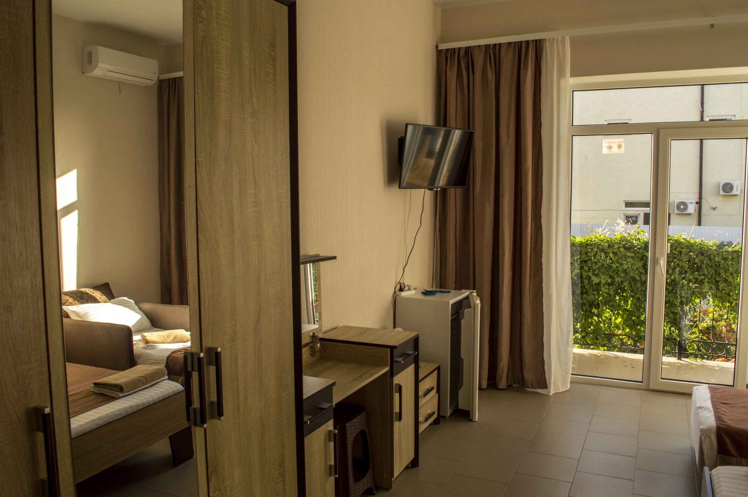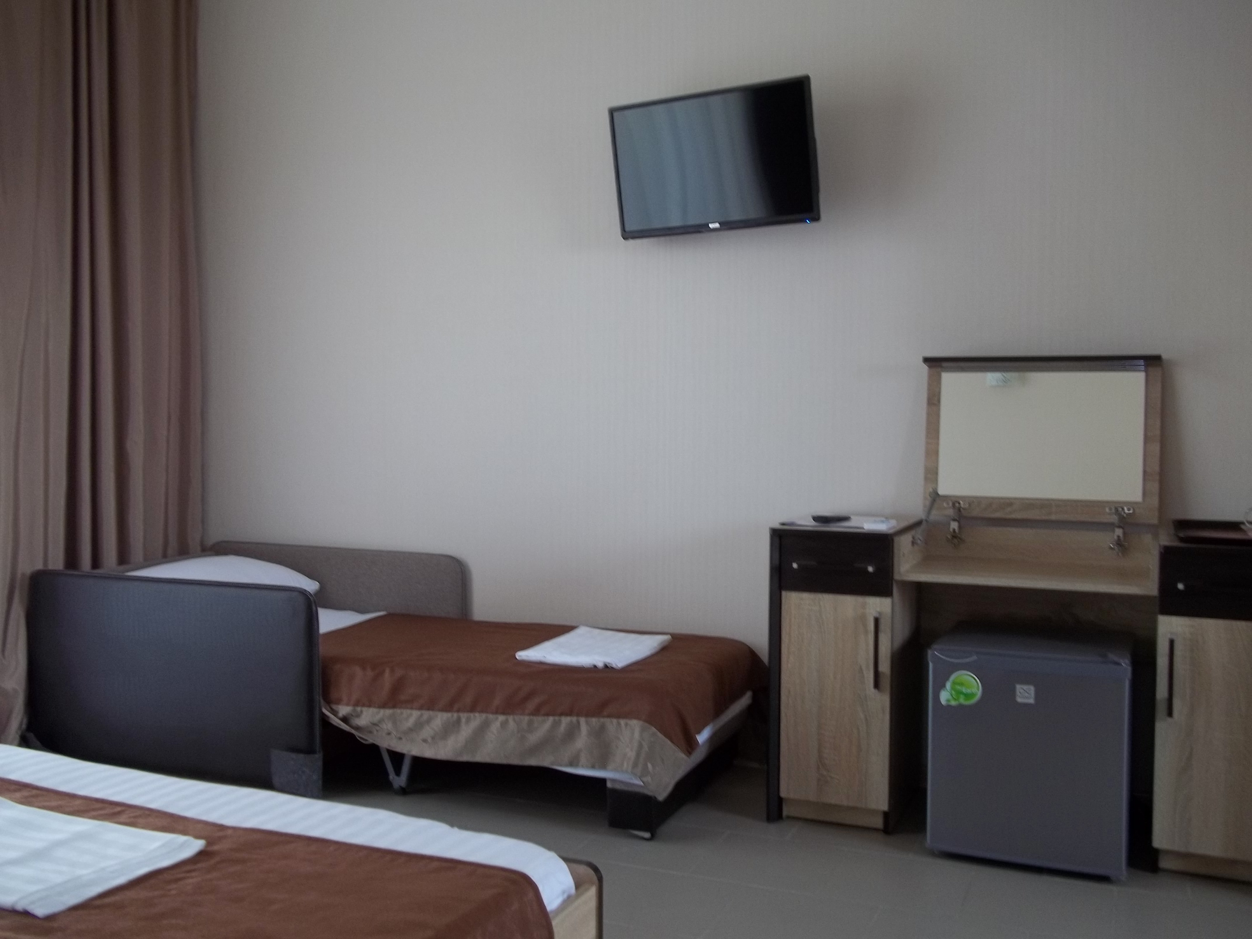 - Оборудование: кондиционер, мини-холодильник, сейф, телевизор, чайный набор посуды, электрочайник
