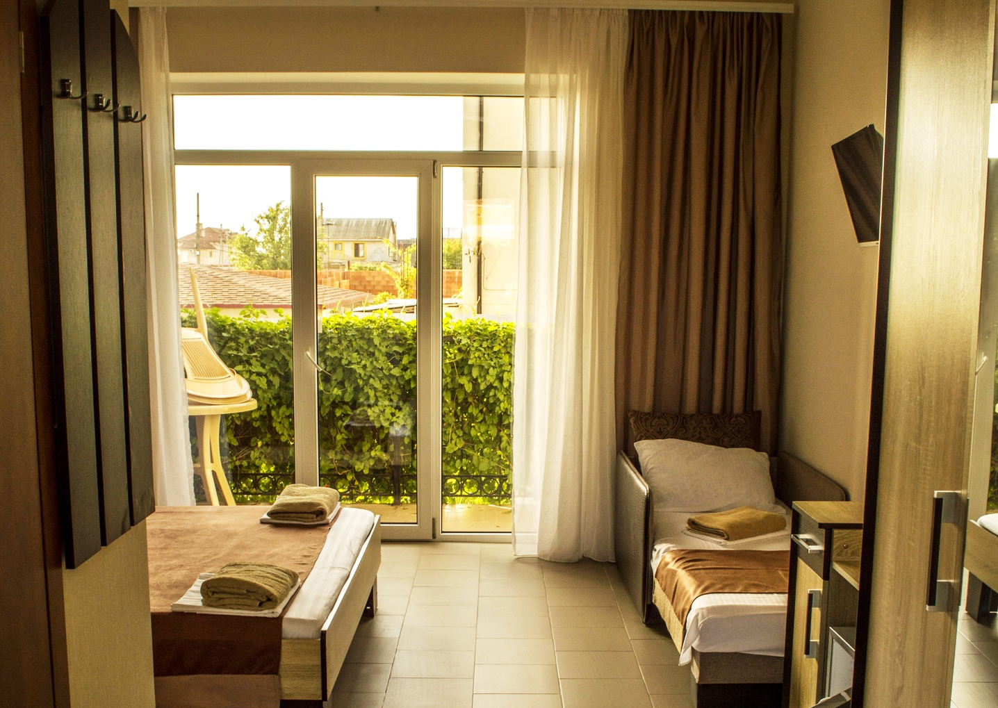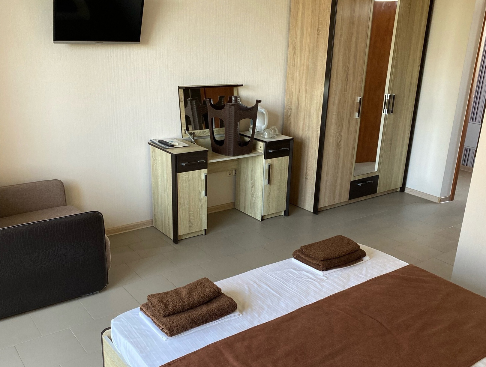 - Сервис: Wi-Fi бесплатно, смена полотенец, смена постельного белья, уборка номера